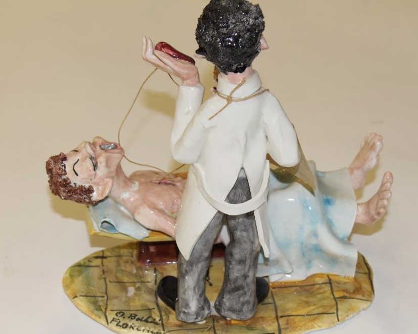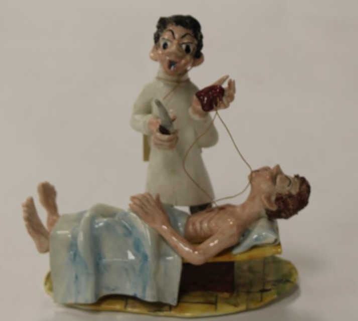Lot 1704 Handmade ceramic from Bellini, Florence, Italy of Dr. removing patients heart in a humorous or sat