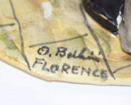 Handmade ceramic from Bellini, Florence, Italy of Dr. removing patients heart in a humorous or satirical manner. Measures 8” in height by 9” across the base. In excellent condition with tag cost over 4400 40 years ago in Italy. Est.:$200-$400