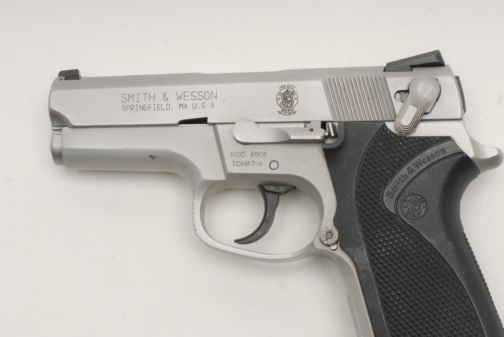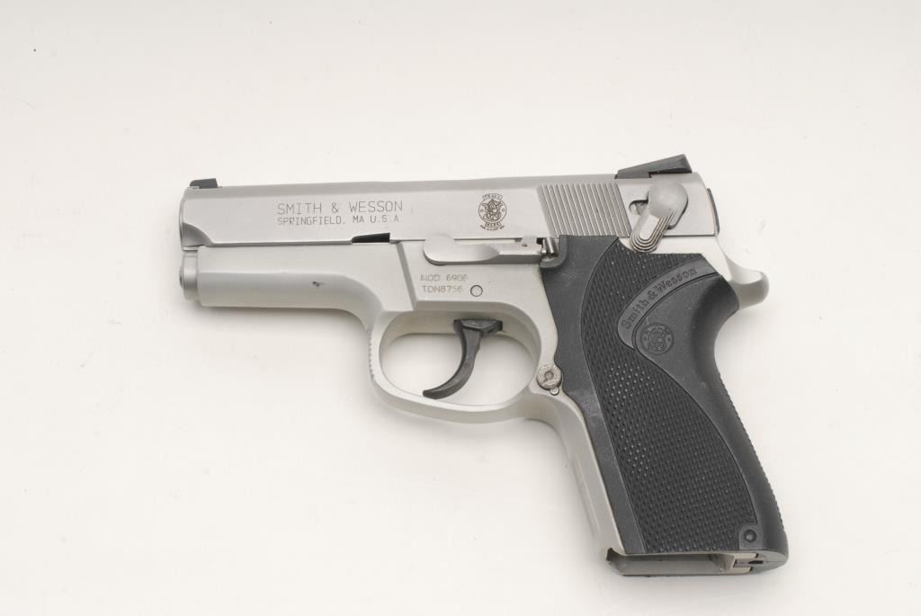 Smith & Wesson Model 6906 DA semi-automatic pistol, 9mm caliber, 3.5” barrel, S/N TDN8756, no magazine, stainless steel, checkered wrap around composite grips, in overall fine condition with a fine bore, crisp action, fine grips; ambidextroussafety. (Modern/PPT). Est.: $250-$500.