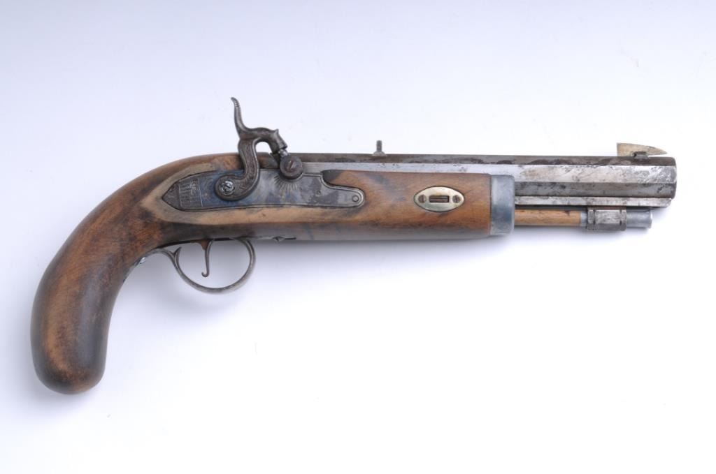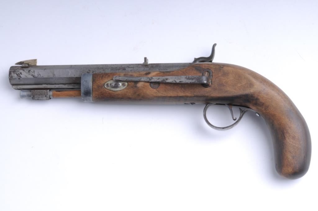 Conn. Valley Arms .50 caliber Hawken pistol. Artificially aged and cased in fancy velvet lined box. (Antique) Est.: $150-$300