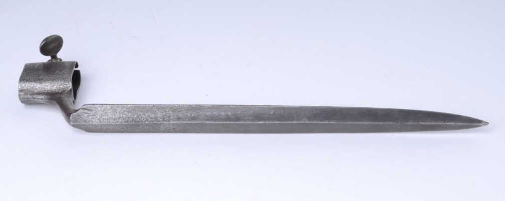 Lot 1744 Eighteenth to Nineteenth Century hunting bayonet for over/under big bore rifle; dark patina, scatt