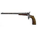 **European Parlor Pistol 6mm, 10.5" round to octagonal barrel, S/N 25. The barrel is marked with the caliber, and feratures three proofs with a crown over a B,G and U. The serial is marked on the loading gate, the ejector lever and on theinterior of the frame beneath the grips. Blue finish with checkered grips and forearm. Most of the pistol retains its original blue finish. The grips are good. Mechanics function properly. Very good overall. Est:$300-500