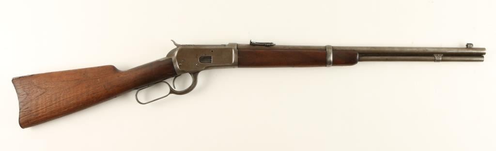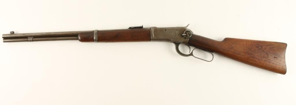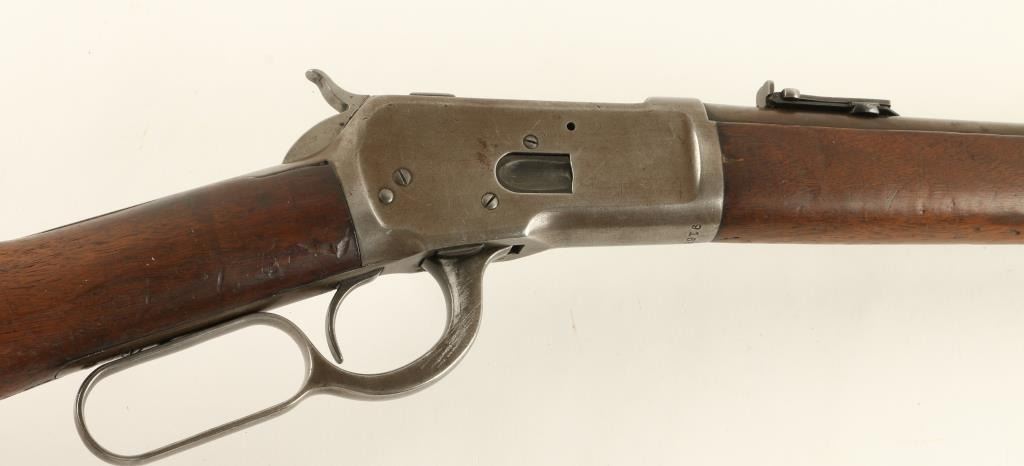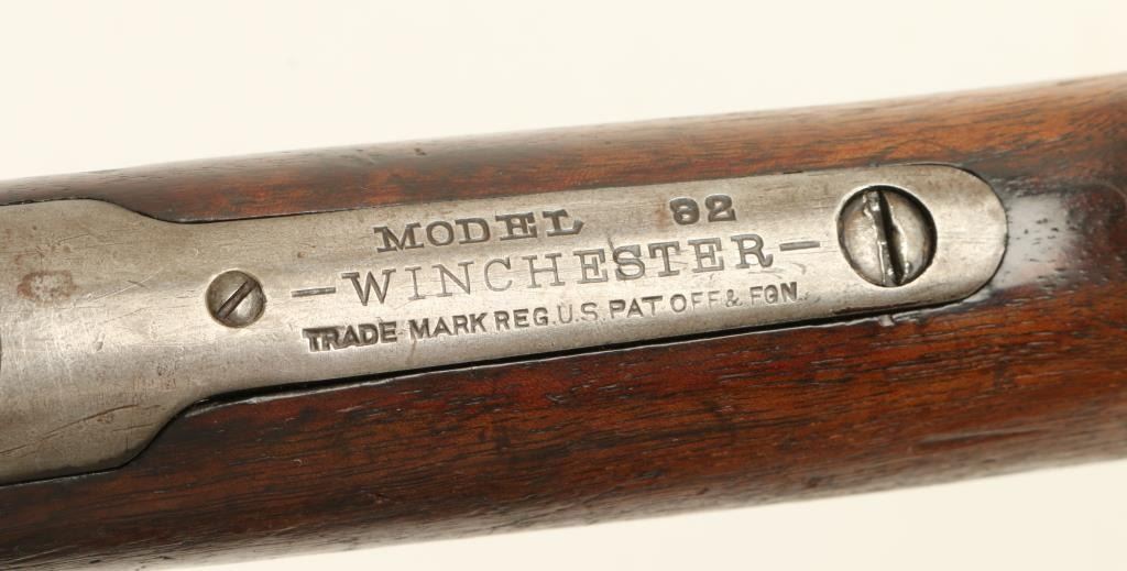Winchester Model 92 lever action SRC, .32 W.C.F. caliber, 20” barrel, S/N 916825, blued finish, wood stocks in overall good to very good condition displaying a brown patina to metal surfaces, overall good bore, crisp action, good markings and good wood showing weathering to the butt stock and scattered nicks and mars from carry and storage. (C&R). Est.: $800-$1,600.