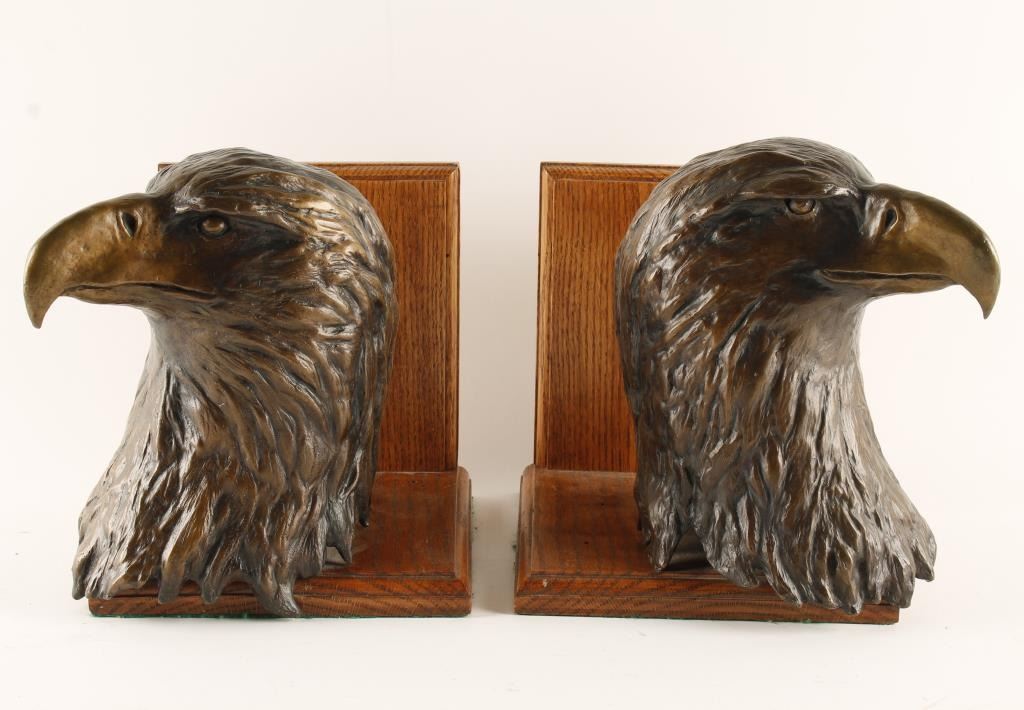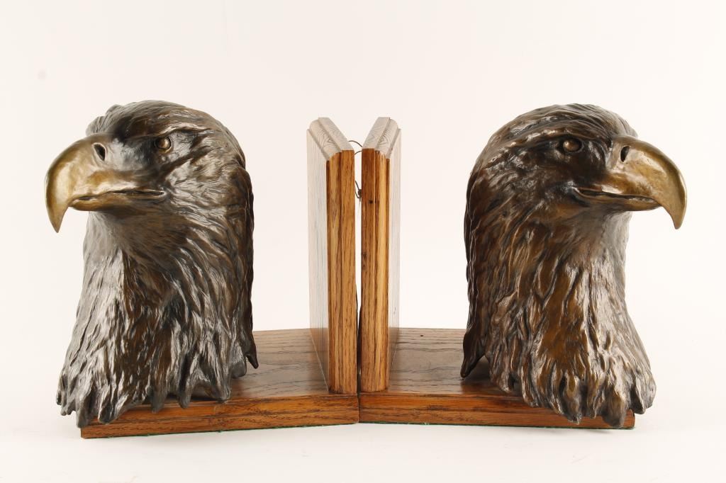 Lot 1825 Pair of large bronze eagle heads mounted on wood bases to use as book ends; numbered 1 of only 15