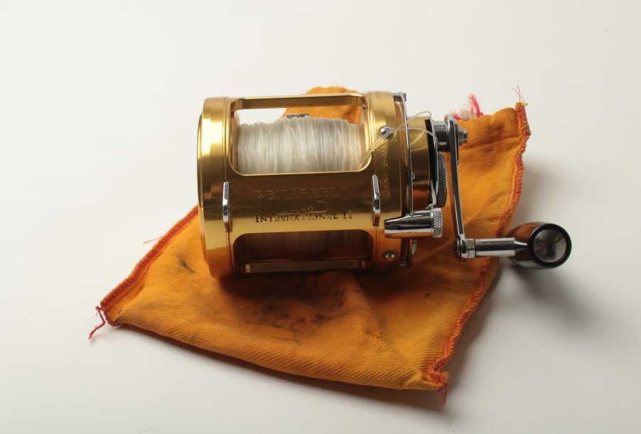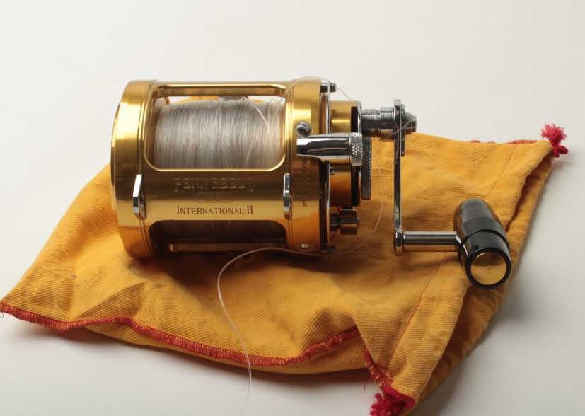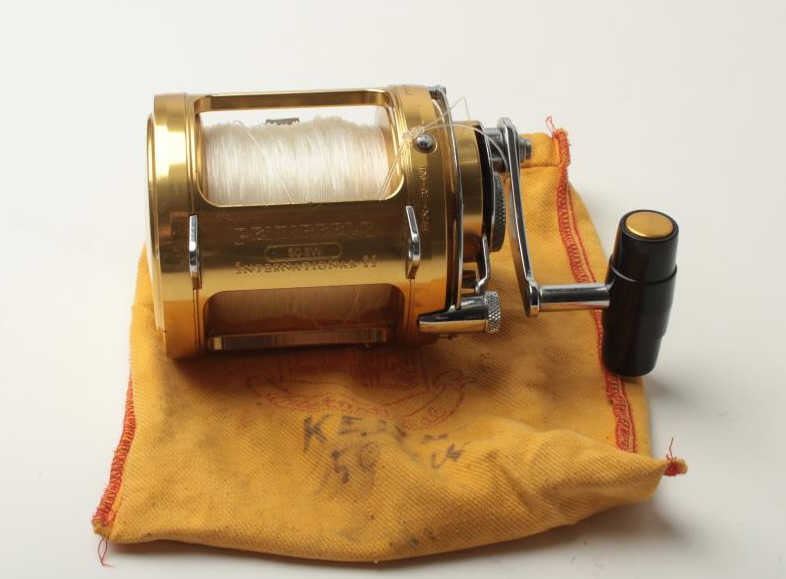 Penn Reels International II two speed reel marked 30SW and numbered D921014. In good condition with some dings and scratches from use. Original bag included. Est.: $250-$500