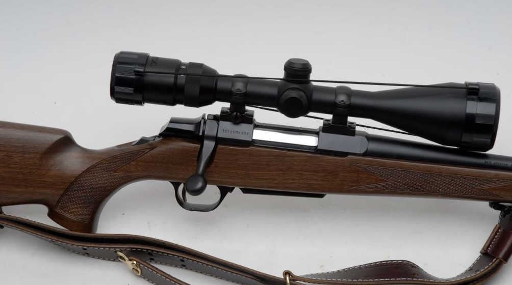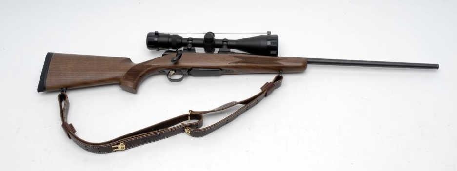 Browning A-bolt action rifle, .223 WSSM caliber, 23” barrel, S/N 72126MW351, mat black finish, checkered wood stock with leather sling and mounted with an adjustable BSA scope showing fine optics. This rifle is in like new condition.(Modern/PPT). Est.: $500-$1,000.