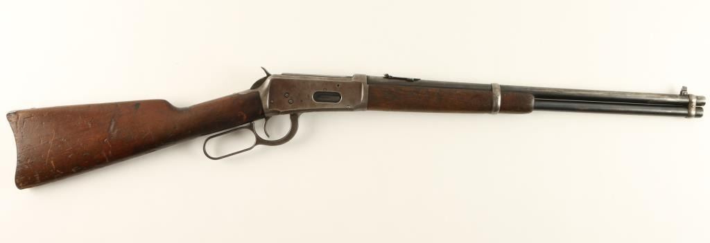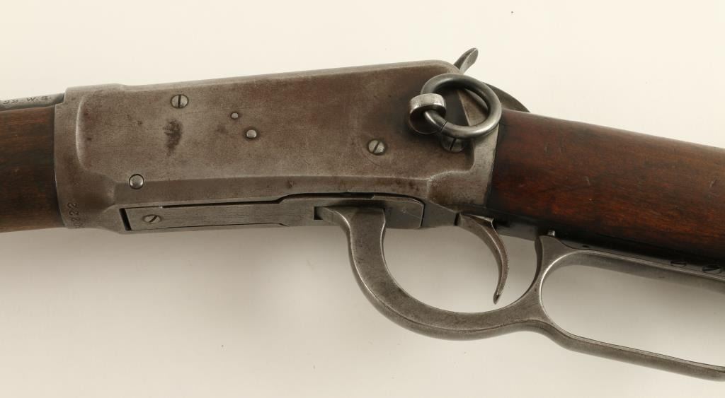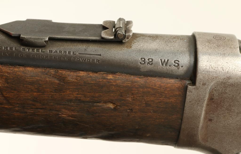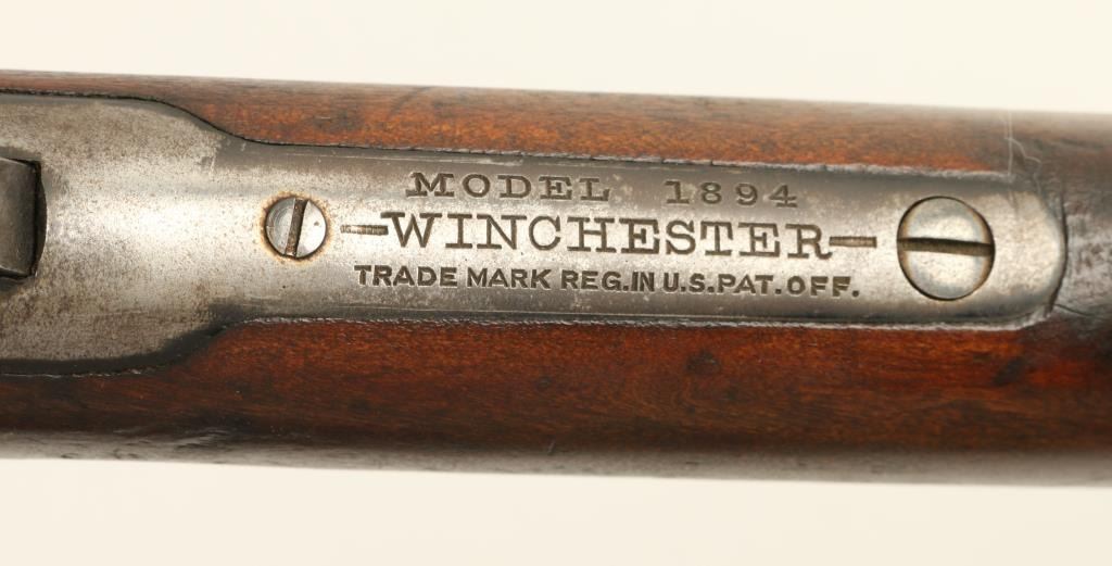 Winchester Model 1894 lever action SRC, .32 W.S. caliber, 20” barrel, S/N 460222, blued finish, wood stocks in overall good to very good condition displaying original blue in protected areas, very good + bore, crisp action and markings; wood isgood overall showing scattered mars, dings and scratches from years of carry. (C&R). Est.: $400-$800.