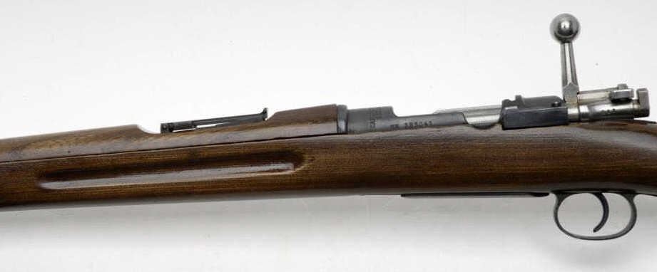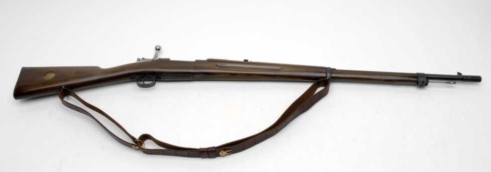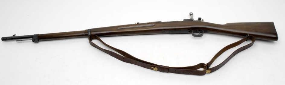 Swedish bolt action Mauser rifle, import-marked, 6.5mm caliber, 31” barrel including added muzzle break, S/N 383042, military finish, wood stock with commercial leather sling in overall good to very good condition with good bore, crisp action,good markings including 1916 dated receiver; majority of military finish remaining on metal surfaces, good wood stock that has been re-finished. (C&R/PPT). Est.: $200-$400.