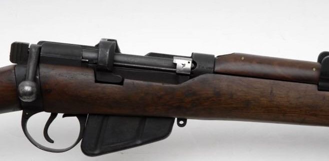 Lot 1893 Enfield bolt action “Jungle” carbine, .303 British caliber, 23” barrel, S/N 34090, military finish,