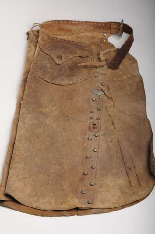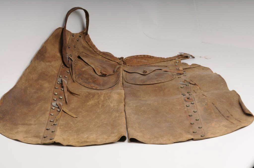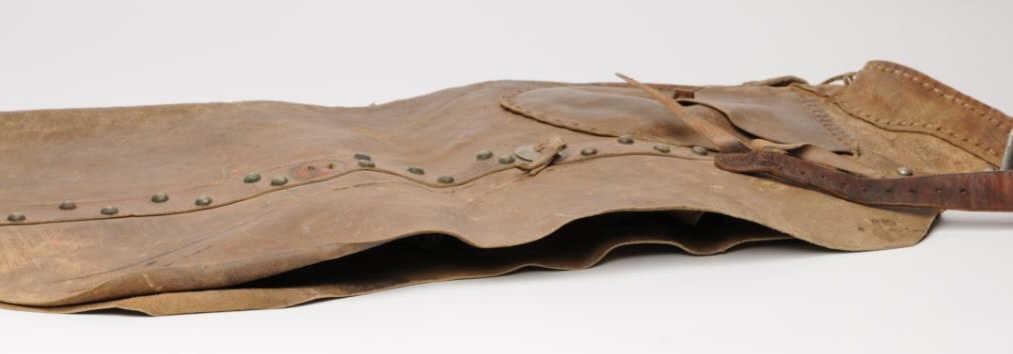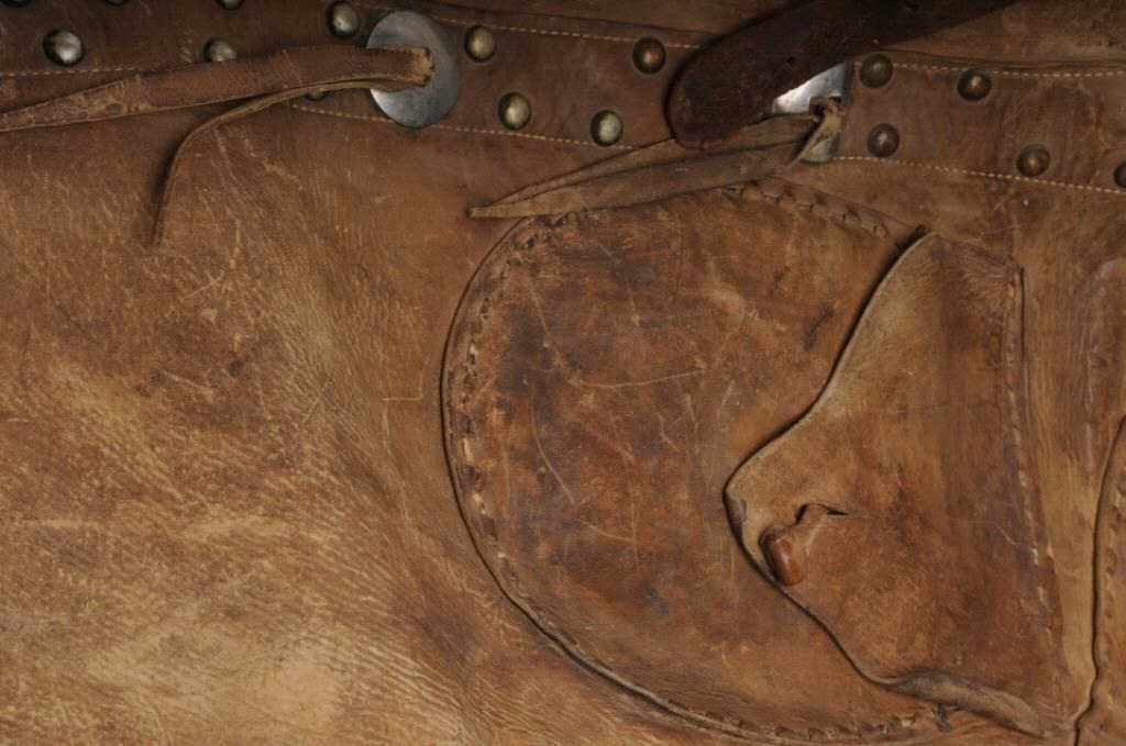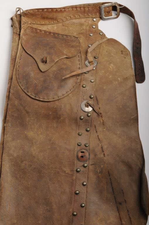 Lot 1906 Pair of batwing chaps marked “N. Porter, Phoenix, Ariz.”; well-used with nickel conchos and brass