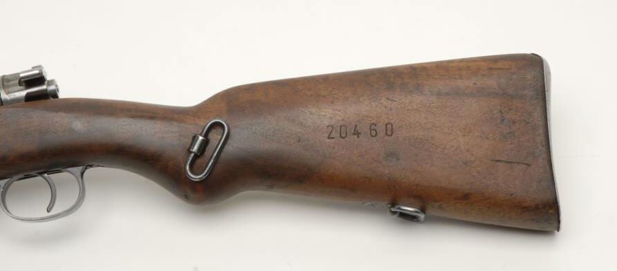 BRNO 98 Mauser bolt action rifle, 8mm cal., serial #YR20460. The rifle is in good overall condition with a 24” barrel featuring a ramp front and military tangent rear sights. The barrel and action retain a significant amount of their bluedfinish with wear at the muzzle and finish loss consistent with use. The barrel is import marked at the muzzle. The smooth wood military stock is in good overall condition with numerous compressions and mars noted. The stock isserialized to the rifle and features sling swivels and a smooth metal butt plate which is slightly proud at the toe. The bore is good, the action crisp and markings are sharp on this rifle. Est.: $200-$400. (C+R).