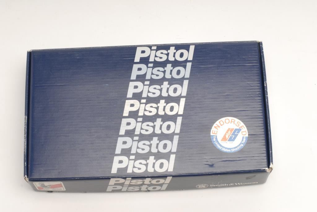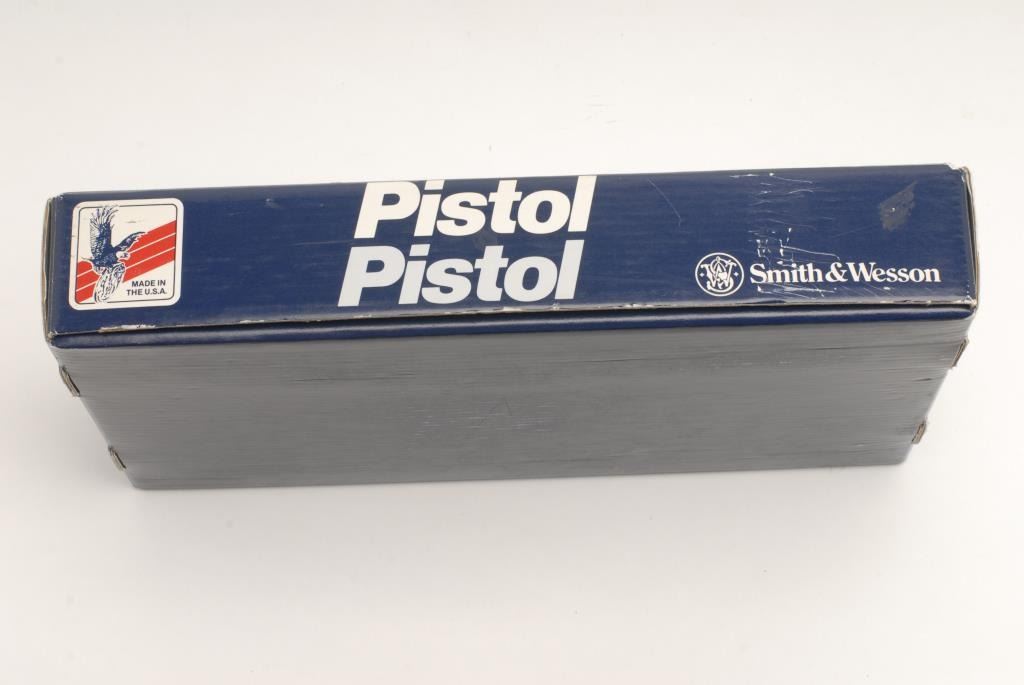 Smith & Wesson Model 2213 Semi-auto pistol, .22 L.R., 3” barrel, Stainless, S/N TVB6367. This pistol is in like new condition showing very little handling and no use. Accompanied by its original S&W box, manual, S&W pouch, and holster.The box shows a United States shooting team endorsed sticker on the top along with some scratches and tatters from storage. (No CA Sale) Est.: $150-$300