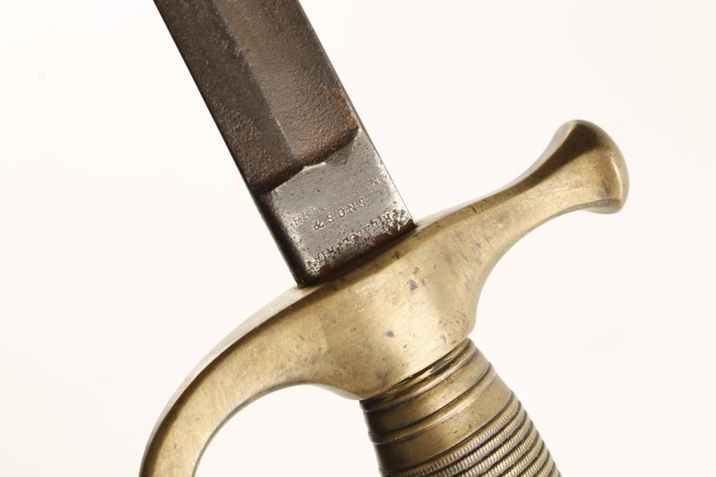 Lot 1921 Civil War Musician’s sword (no scabbard) by Horstmann & Sons; brass grip, guard and pommel. Est