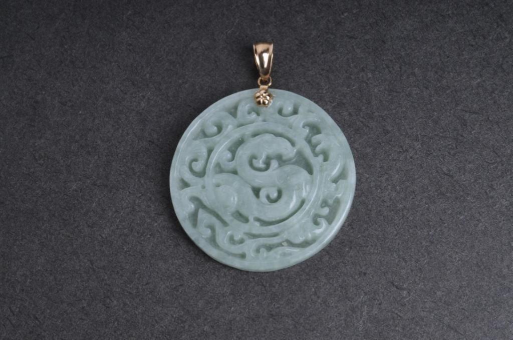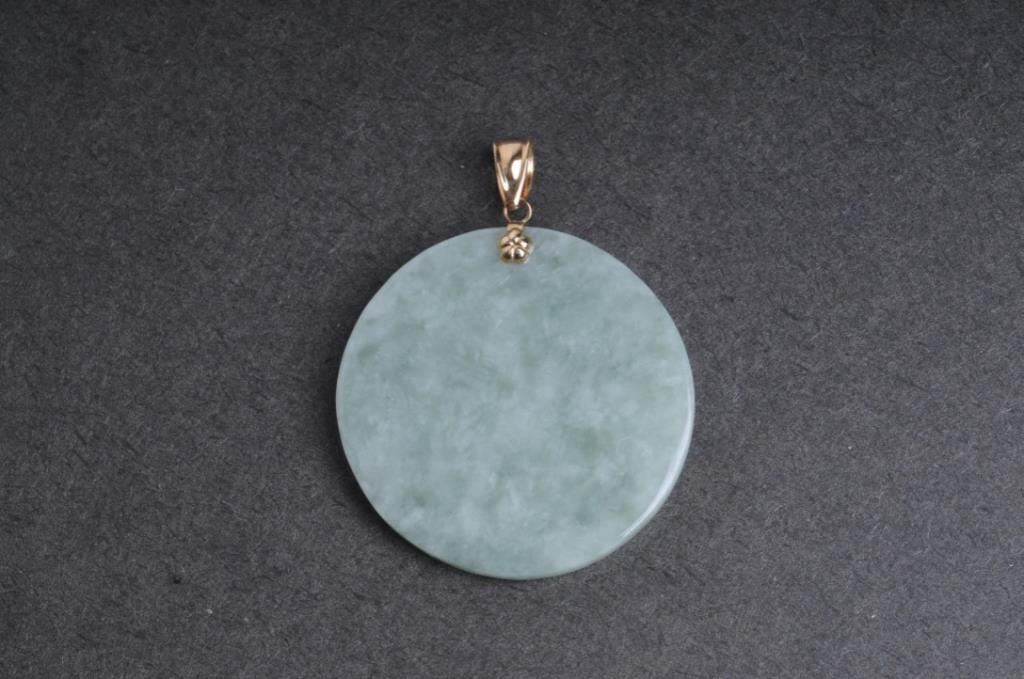 Lot 1925 One natural carved jade disc pendant with 14k yellow gold clasp Est:$150-200