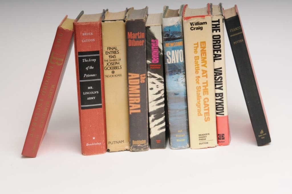 Lot of 9 misc. history books from the Civil War to WW II. Est.: $25-$50.