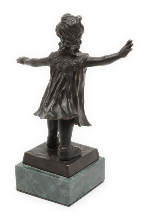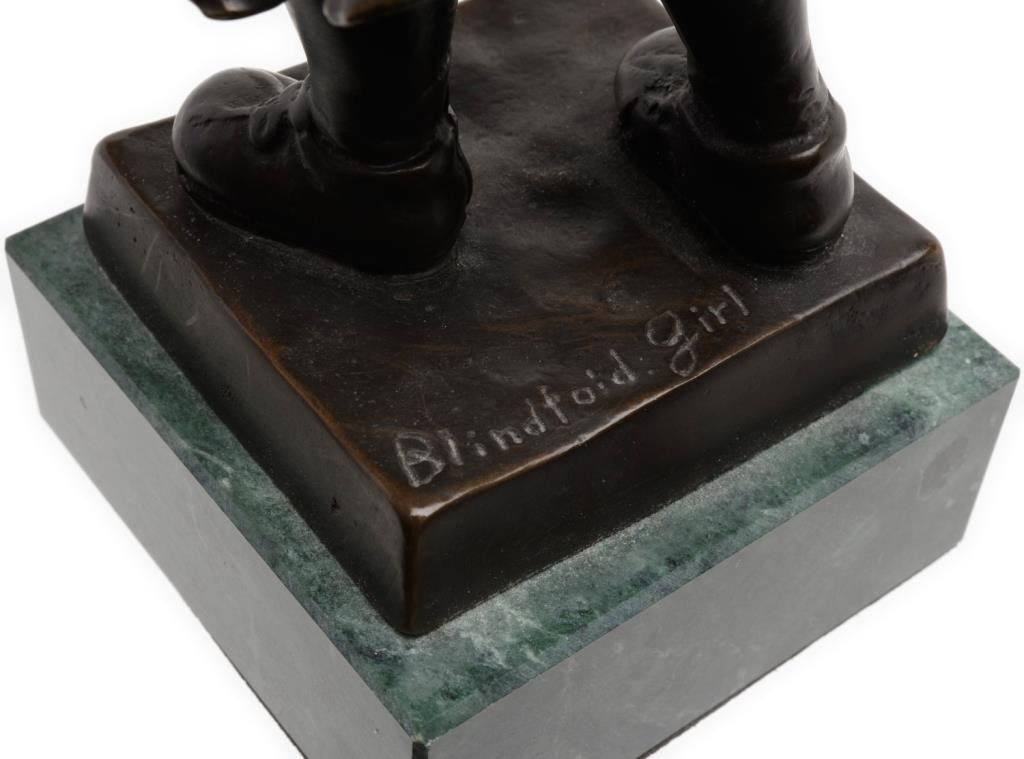 Lot 1933 Small bronze on stone base of blindfold girl, approximately 8.5” in height including base with ple