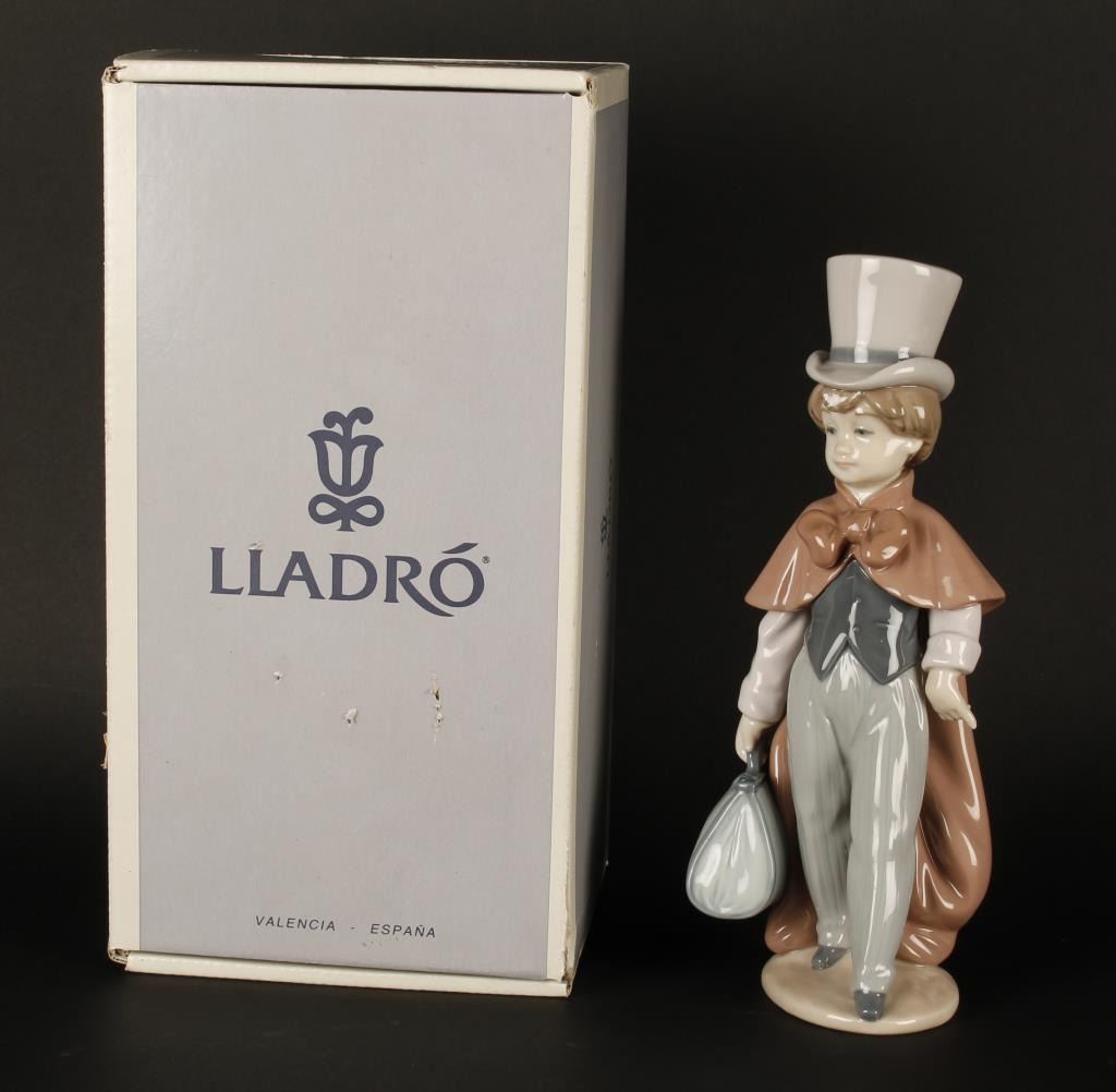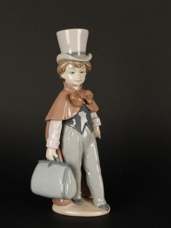 Lot 1935 Lladro figure of a boy with a suitcase entitled “A Great Adventure”, approximately 9” in height and