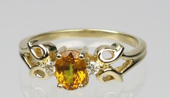 Lot 900d Lovely ‘LEVIAN’ Yellow Sapphire and Diamond Ring featuring an oval yellow sapphire weighing approx.
