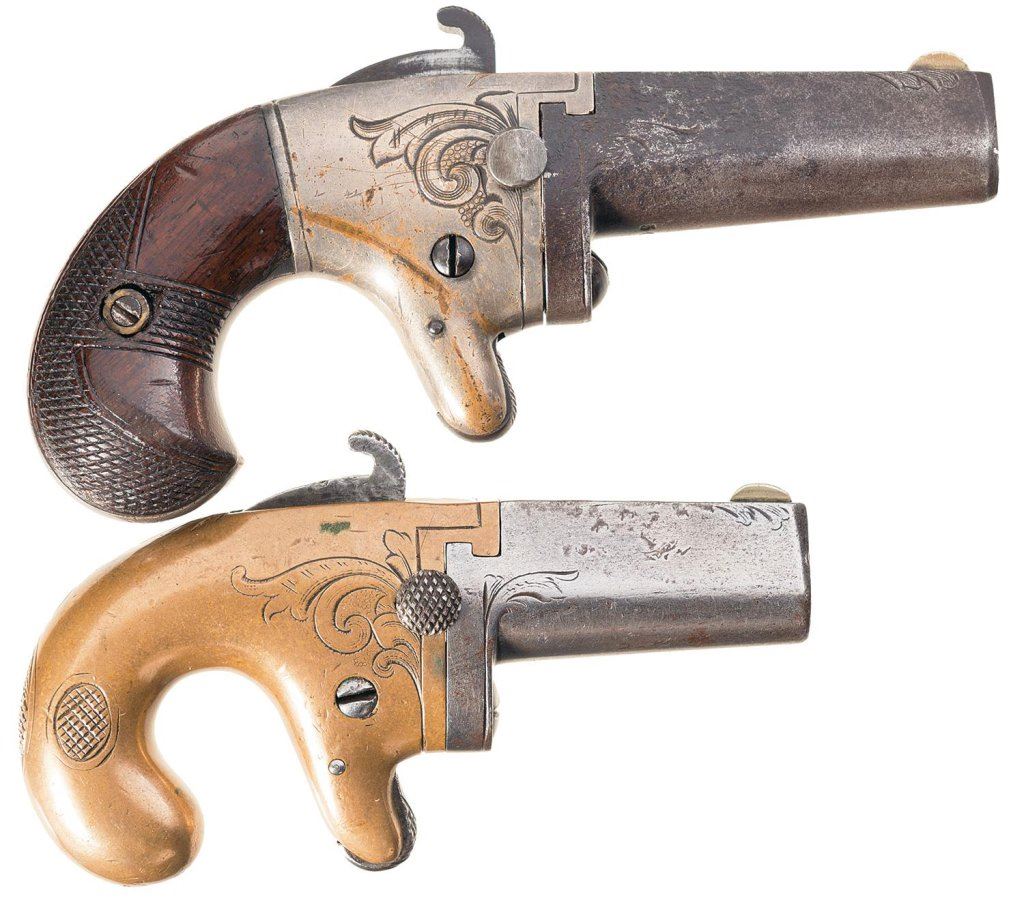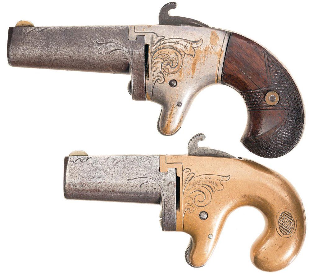 Two National Arms Co. Engraved Derringers -A) National Arms Co. No. 2 Derringer