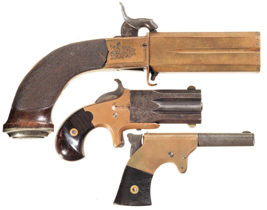 Lot 190 Three Antique Pistols -A) Engraved James Harper Box Lock Double Barrel Percussion Belt Pistol