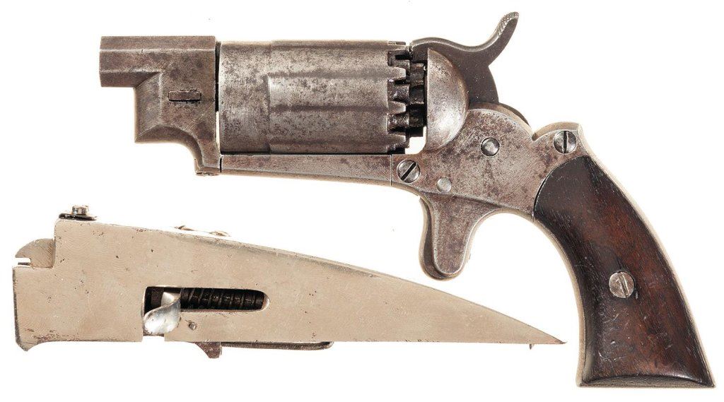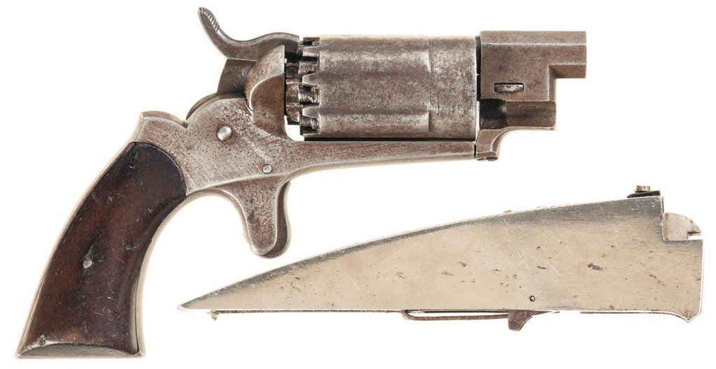 Lot 193 Pocket Revolver and Burglar Alarms -A) "Avenging Angel" Style John Walch Ten Shot Double Hammer Pock