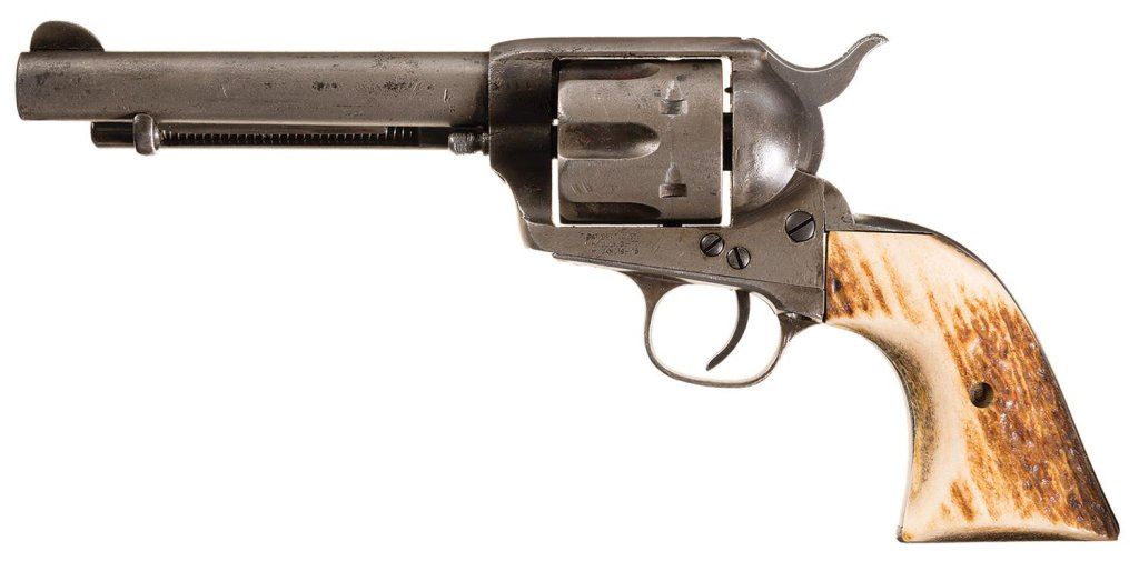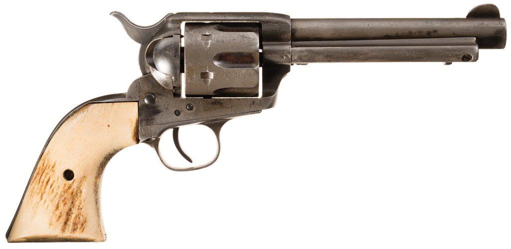 Lot 253 Antique Colt Single Action Army Frontier Six Shooter Revolver with Stag Grips