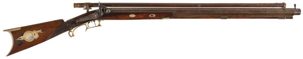 Lot 258 Half Stock Percussion Target Rifle with Engraved and C. Baker Marked Lock, Scope, and False Muzzle