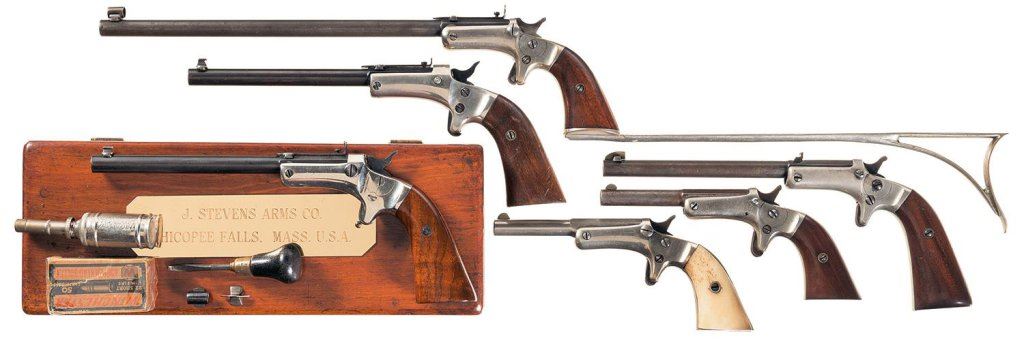 Lot 329 Collector's Lot of Six Stevens Tip-Up Pistols -A) Stevens Old Model "Pocket Rifle" Pistol with Match