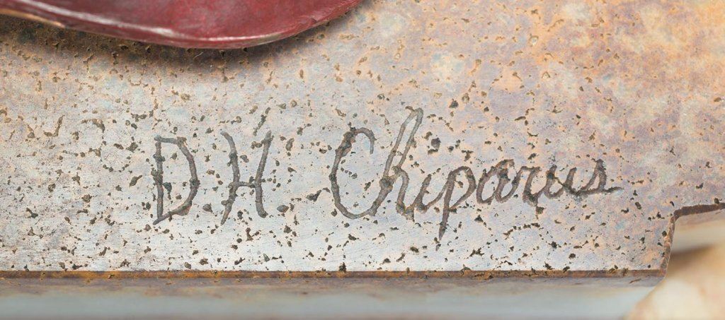 "Everlasting Love" cold patina and parcel-gilt bronze and chryselephantine sculpture. Sometimes this sculpture is called "The Proposal," and it is a fantastic multicolor bronze with a man's head and lady's head carved out of antique ivory. This large sculpture rests on a multi-level onyx elongated oval caramel color plinth that is signed "DH Chiparus" on the top of the onyx base. This sculpture is prominently featured in the book "Chiparus: Master of Art Deco" by Alberto Shayo on pages 54 and 87. The sculpture's dimensions a 26 inches in height, 20 inches in length and 6 inches wide. Weight is approximately 86 lbs. Very good with slight crazing of the antique ivory head of the man.