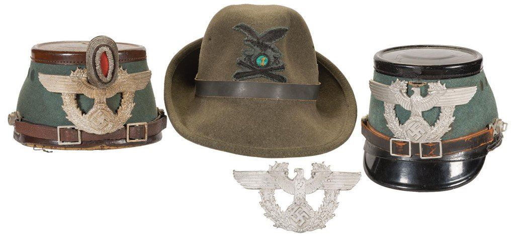 Lot 535 Two German Police Shako and One Italian Cappello Alpino