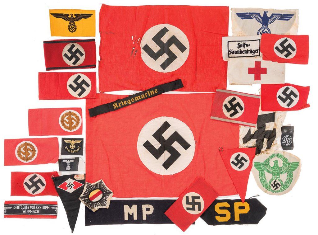 Lot 543 Large Grouping of Nazi Style Items Including Flags and Armbands