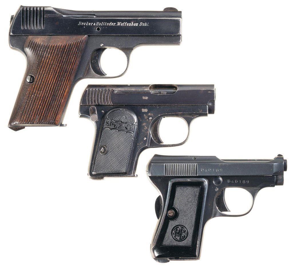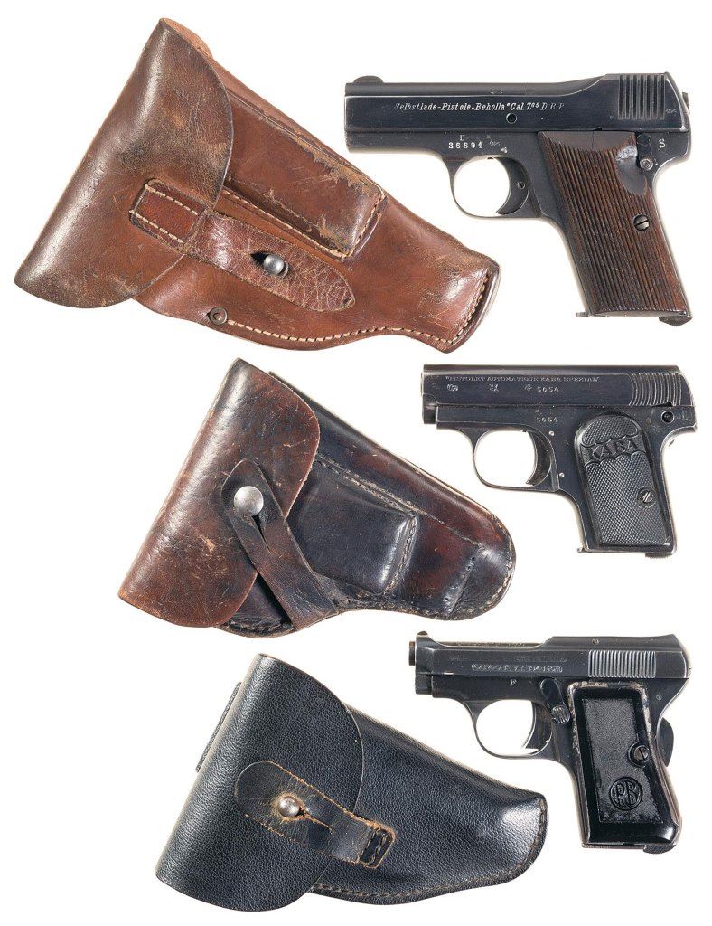 Three Semi-Automatic Pistols with Holsters -A) Becker & Hollander Beholla Model Pistol with Capture Paper