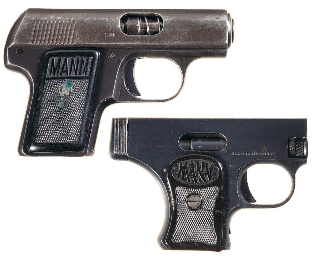 Collector's Lot of Two Fritz Mann Semi-Automatic Pistols with Holsters -A) Fritz Mann Pocket Pistol