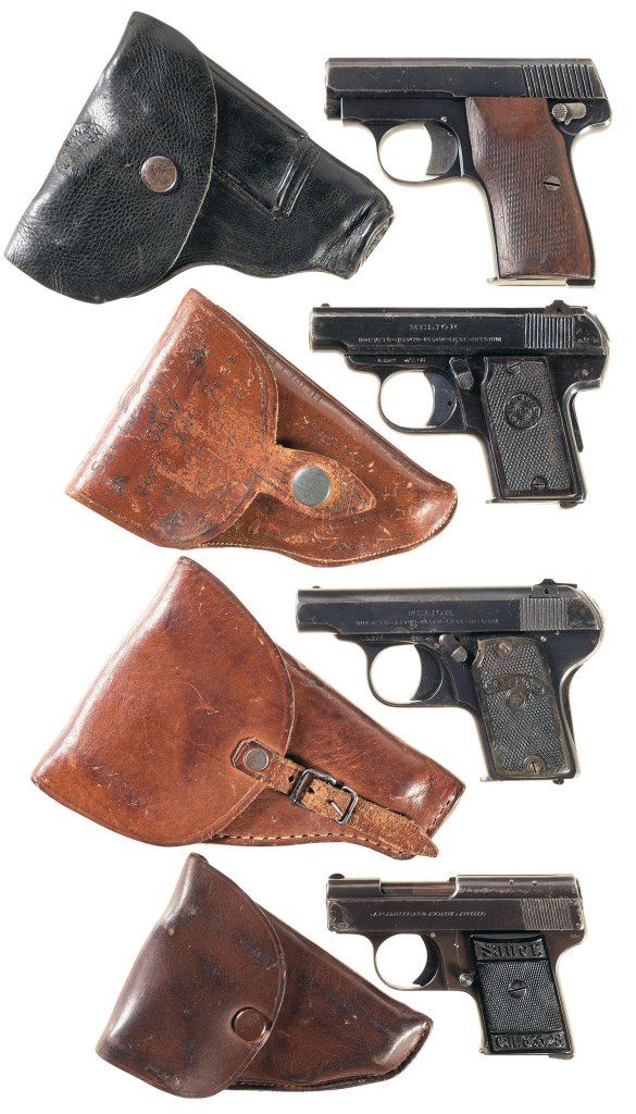 Four Semi-Automatic Pistols with Holsters -A) German Pocket Pistol