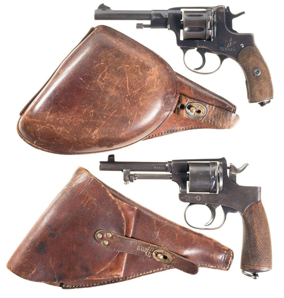 Lot 702 Two European Military Double Action Revolvers with Holsters -A) Soviet Nagant Model 1895 Revolver