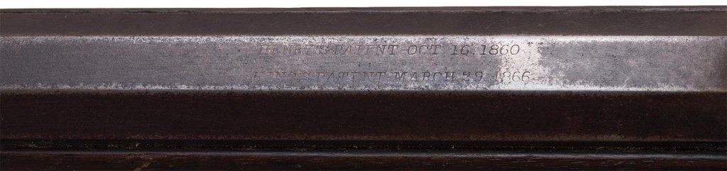 This rifle was manufactured in 1869 based on the serial number which is marked in the third model fashion behind the trigger but is numbered in the second model range and has the desirable two-line Henry and King's patent marking. While the Model 1866 was by all accounts well received in the U.S., relatively few actually remained in the country due to foreign contracts and many of those that remained in the country saw hard use making surviving examples highly desirable.