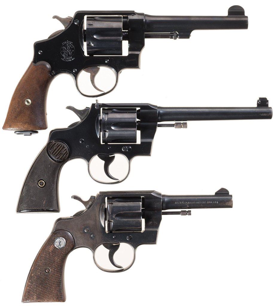 Three Double Action Revolvers -A) Smith & Wesson Model 1917 Army Revolver
