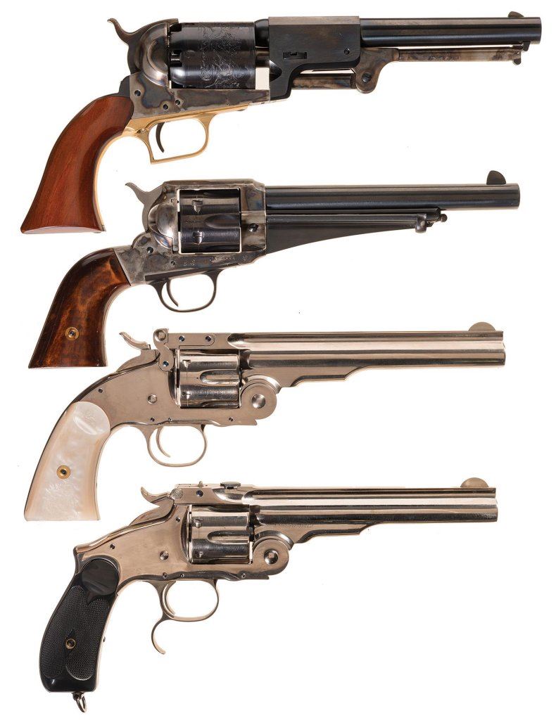 Lot 1037 Four Single Action Revolvers with Box -A) Uberti Cimarron Dragoon Percussion Revolver