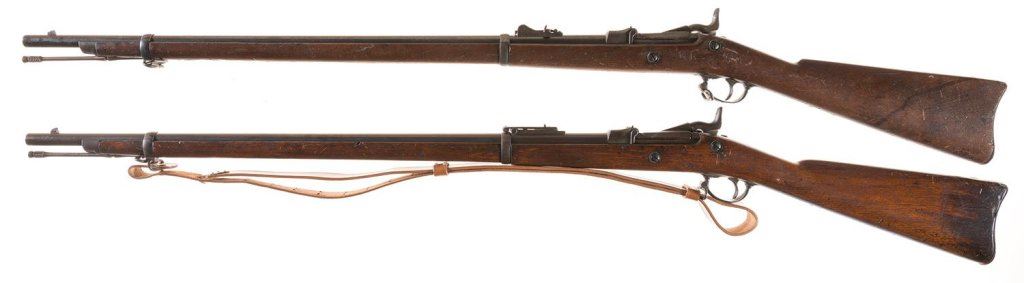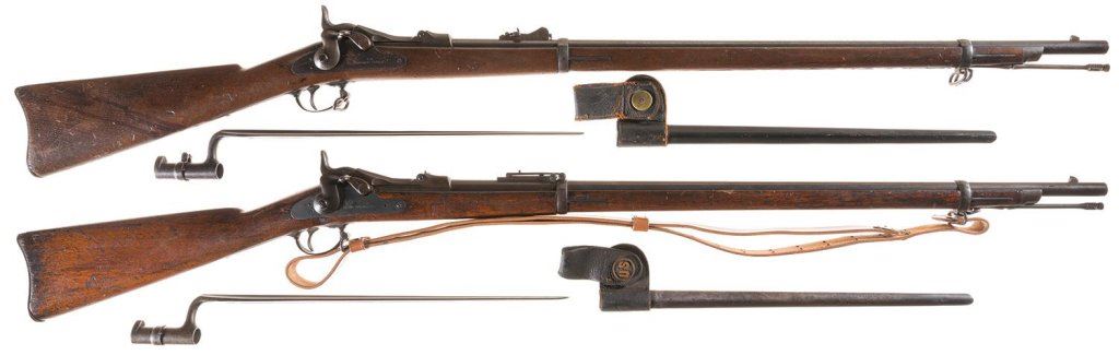 Two U.S. Springfield Trapdoor Rifles with Bayonets, Scabbards, and Frogs -A) Springfield Model 1879 Rifle