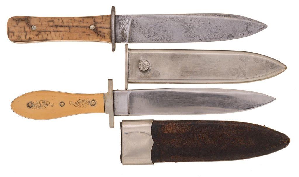 Lot 2275 Two Drop Point Bowie Knives with Sheaths, Including a San Francisco Marked Bowie