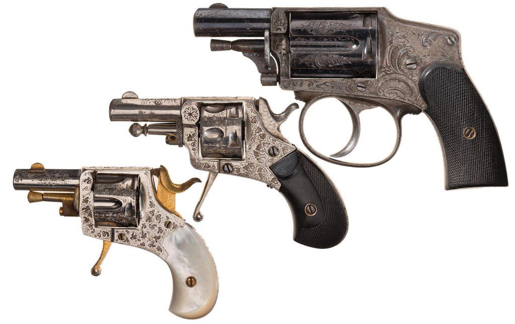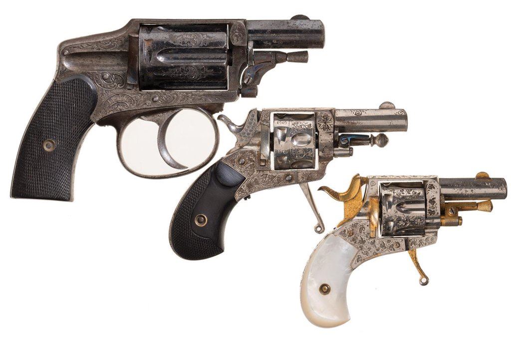 Three Engraved Belgian Double Action Revolvers -A) Belgian Hammerless Revolver