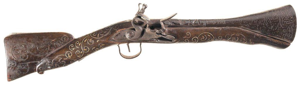 Decorative Flintlock Blunderbuss with Chiseled Barrel and Inlaid Stock