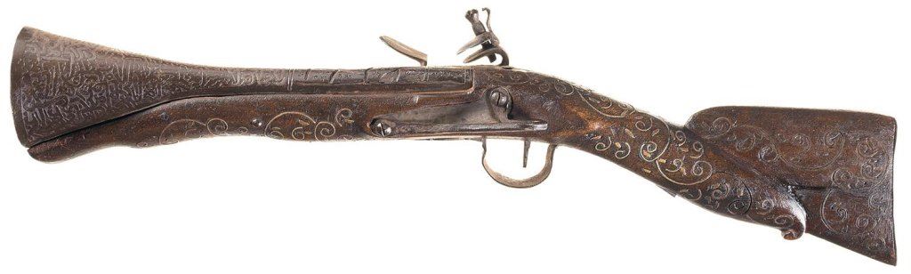 Lot 4079 Decorative Flintlock Blunderbuss with Chiseled Barrel and Inlaid Stock