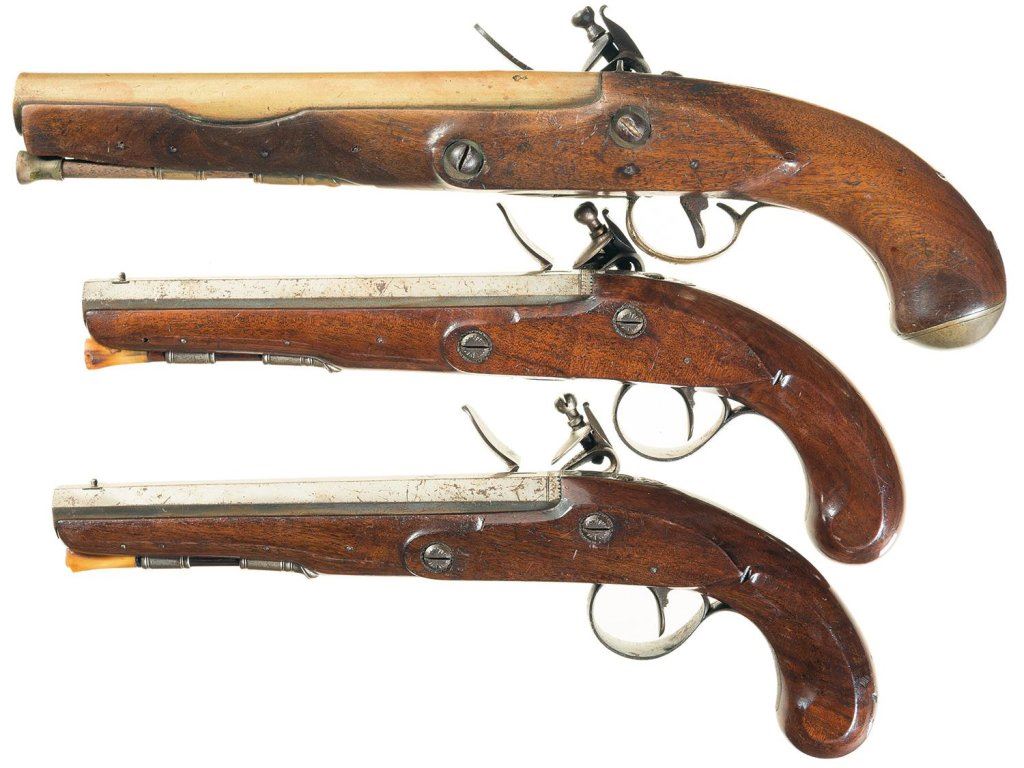Three Ketland & Co. Flintlock Pistols and a Framed Provenance -A) Brass Barreled Ketland & Co. Pistol