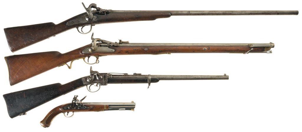 Three Long Guns and One Pistol -A) "ZULU" Marked Belgian Snider Type Single Shot Shotgun