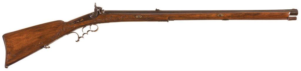 Lot 4128 Gold Inlaid, Engraved, and Carved Back Action Percussion Rifle by C. Pfaff in Karlsruhe