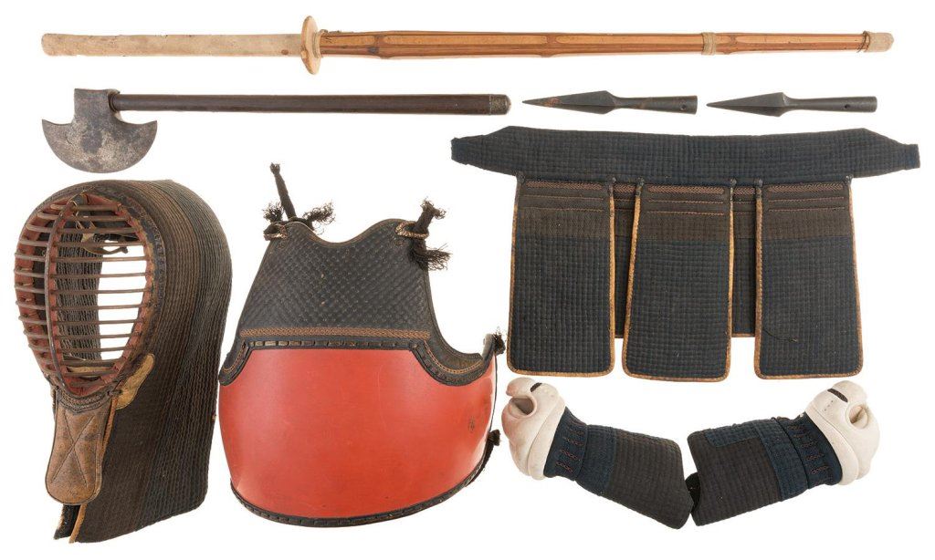Japanese Kendogu Set with Shinai, Lances, and Edged Weapons
