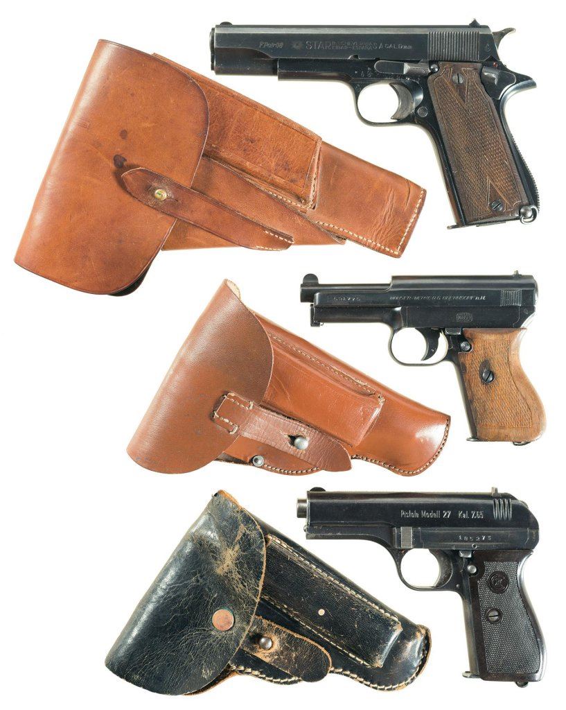 Three Nazi Proofed European Semi-Automatic Pistols with Holsters -A) Star Model B Pistol