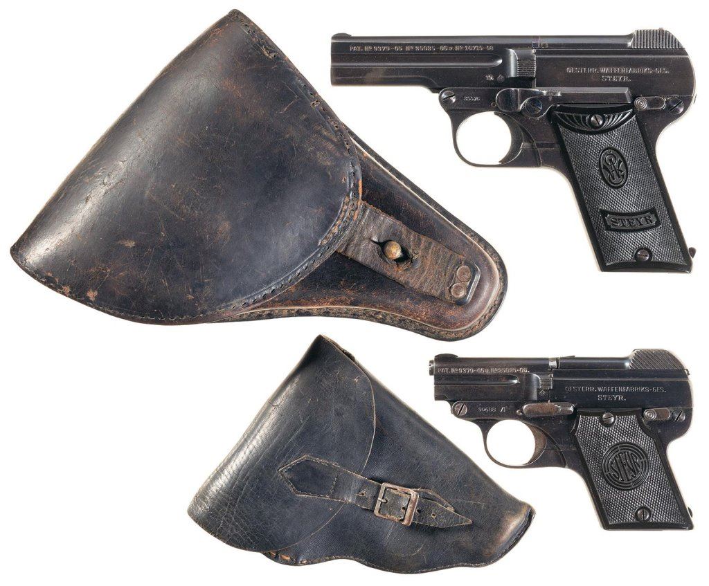 Lot 4256 Two Steyr-Pieper Semi-Automatic Pistols with Holsters -A) Steyr Model 1908 Pistol