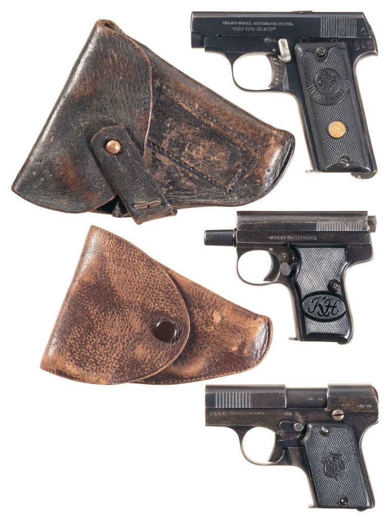 Three European Semi-Automatic Pistols -A) Acha Looking Glass Model Pistol with Holster